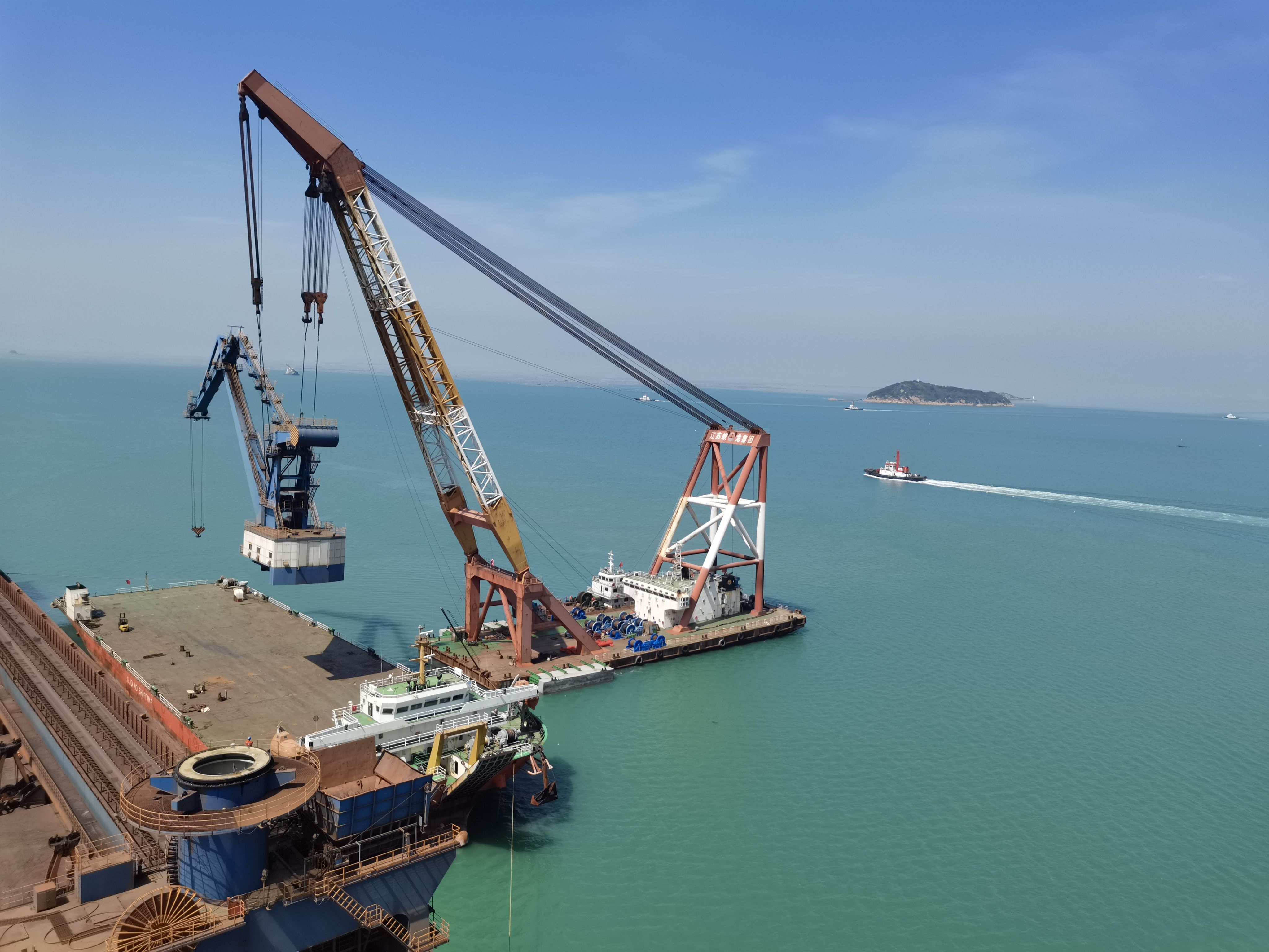 3月28日06时30分,福建可门港物流门机吊装搬迁工作正式����� �������Ƴ������������ �������Ƴ�������拉开序幕。经过两天的奋战,可门港4#泊位1台60t-50m门座式起重机成功吊装上船。3月29日20时00分,运输船“永晟华泓”轮装载着1#门机驶离可门港4#泊位,开往罗源湾北岸5#泊位。