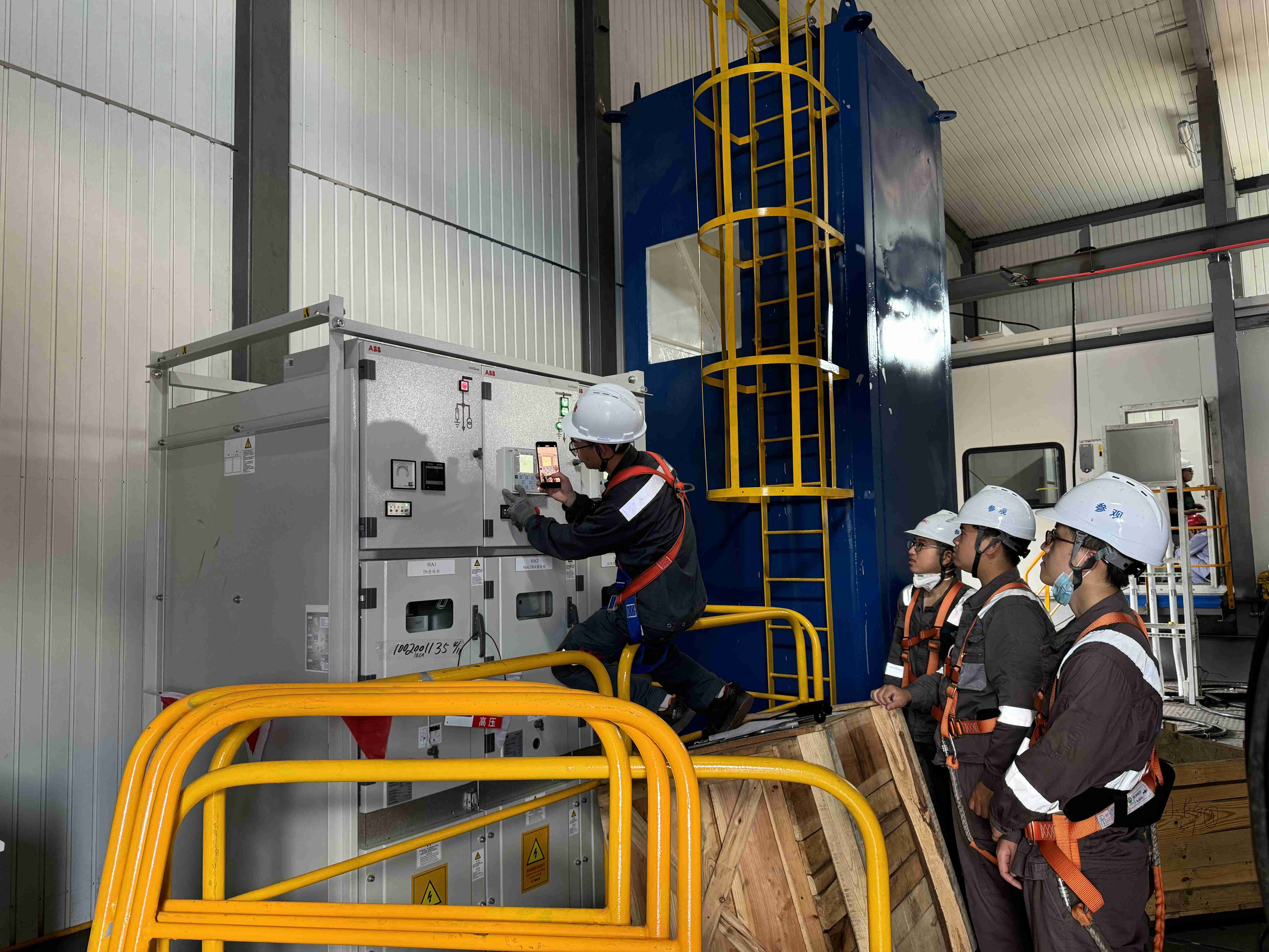 高压送电操作流程关键且复杂,需要确保高压电源的稳定性、电压的准确性以����� �������Ƴ����������� �������Ƴ������������ �������Ƴ������及电能质量的优良性。可门港3#卸船机高压柜采用先进的电力监测设备:如高精度的电压互感器、电流互感器、快速响应的继电保护系统、实时监测等,有效避免了过电压、过电流等异常情况的发生。此外,现场监造工程师和技术人员严格遵循����� �������Ƴ������������ �������Ƴ������������ �������Ƴ������������ �������Ƴ�������设计要求、施工规范规定及高压电气设备安装标准进行送电操作,众人凝聚合力推进高压送电环节,送����� �������Ƴ������������ �������Ƴ�������电过程各项参数正常,电气系统稳定运行,����� �������Ƴ������������ �������Ƴ�������顺利完成此项任务。